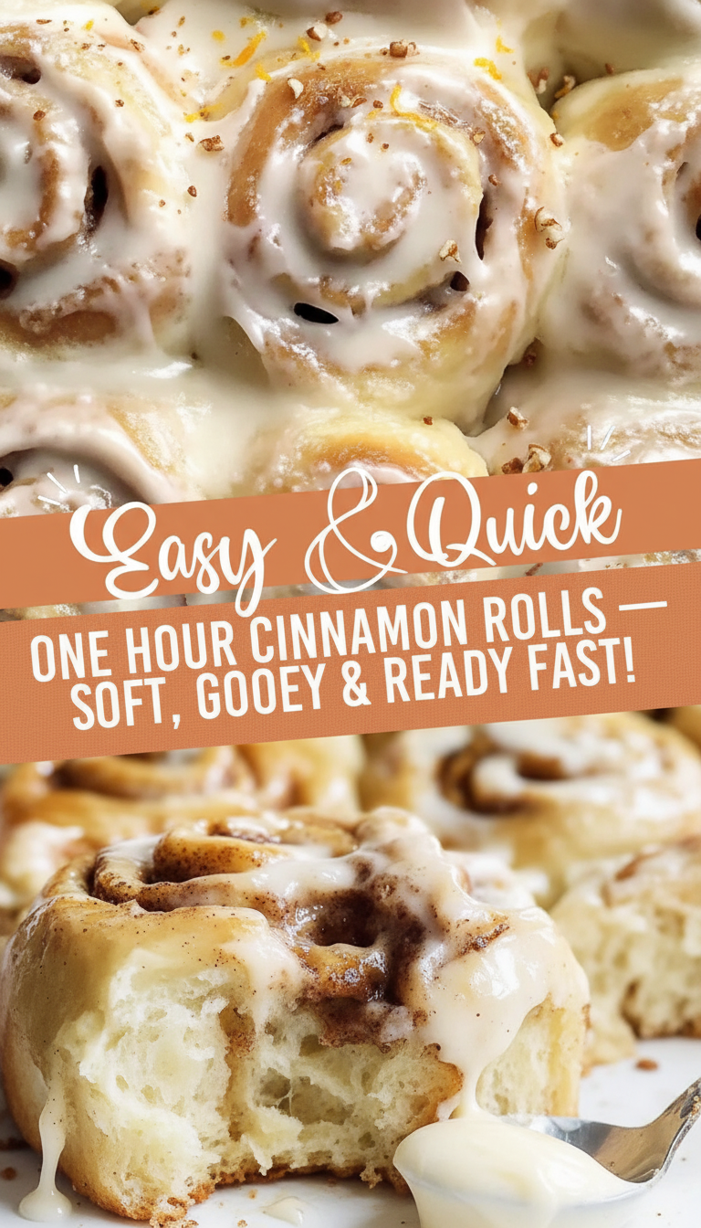 These one-hour cinnamon rolls are a delightful and quick way to bring a touch of warmth and sweetness to your kitchen. With their rich flavor and soft texture, they are sure to become a favorite in your household. Whether for a special occasion or just because, these cinnamon rolls are a perfect treat that will make your heart sing and your stomach happy!