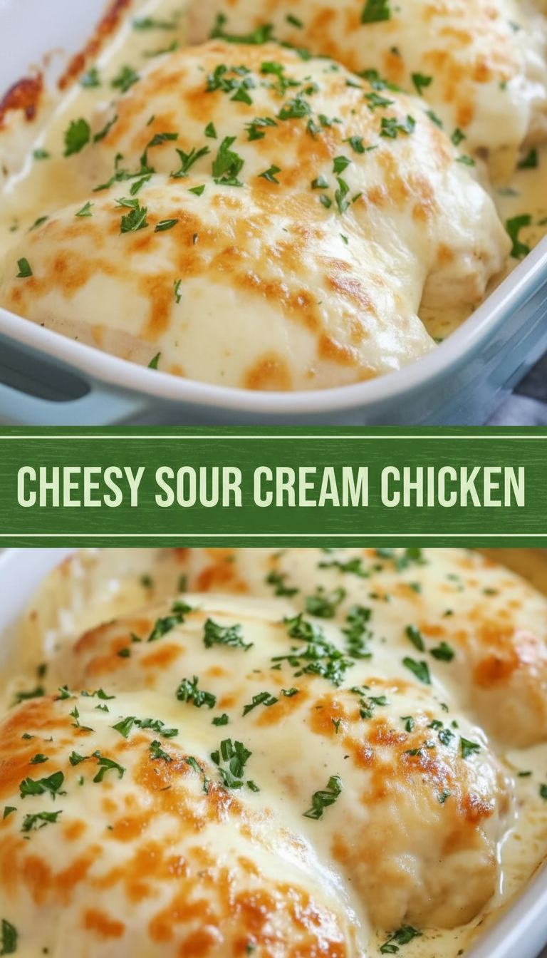 There’s something incredibly comforting about a dish that combines crispy chicken with a creamy, cheesy sauce. Our Smothered Cheesy Sour Cream Chicken is just that kind of dish. The tender chicken breasts are first seared to a golden brown, then enveloped in a rich mixture of sour cream, cream of chicken soup, and cheese, creating a decadent meal that’s perfect for a weeknight dinner or a special occasion. With just a few simple ingredients, you can whip up a satisfying feast that will have everyone at the table asking for seconds!